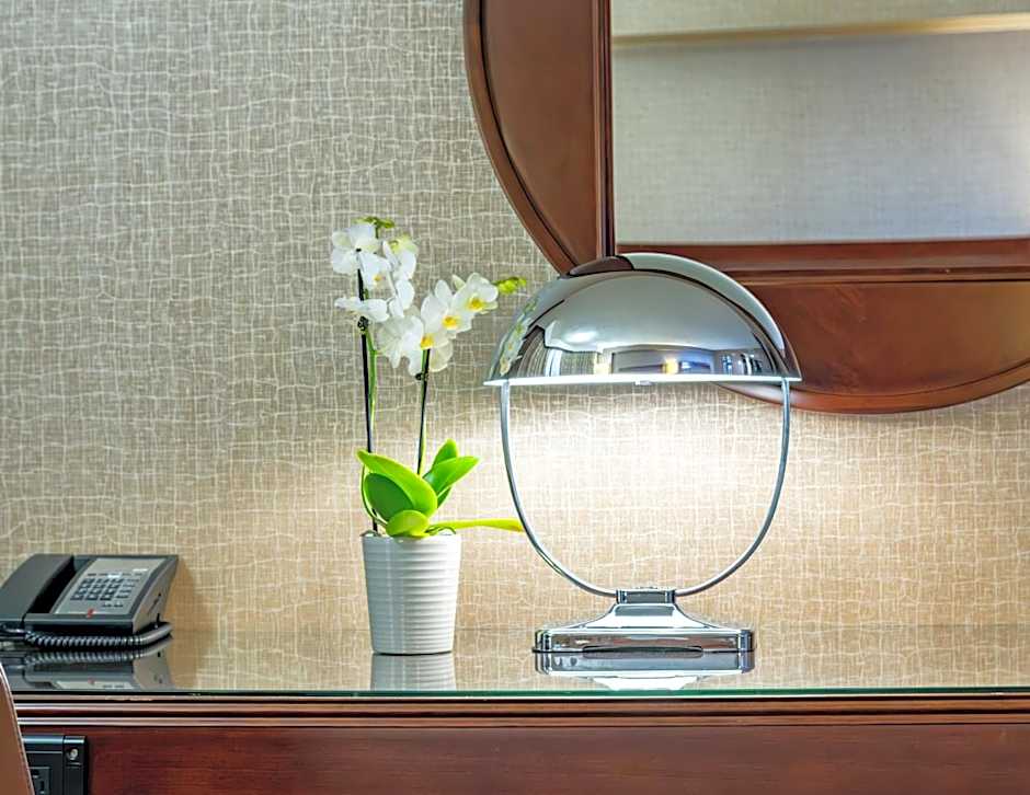 Located in the tower, this 327-square-foot guestroom includes contemporary furnishings, a 42-inch flat-screen TV and an en suite safety deposit box.